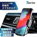 【本日1000円OFFクーポン+店内最大65%OFF】車載用スマホホルダー 自動開閉 ワイヤレス充電 安定性アップ スマホホルダー エアコン吹き出し口 片手着脱 車 車載ホルダー 車用充電器 車載ワイヤレス充電器 車載用充電器 Take-One TM09w qi対応 Qi iPhone Android