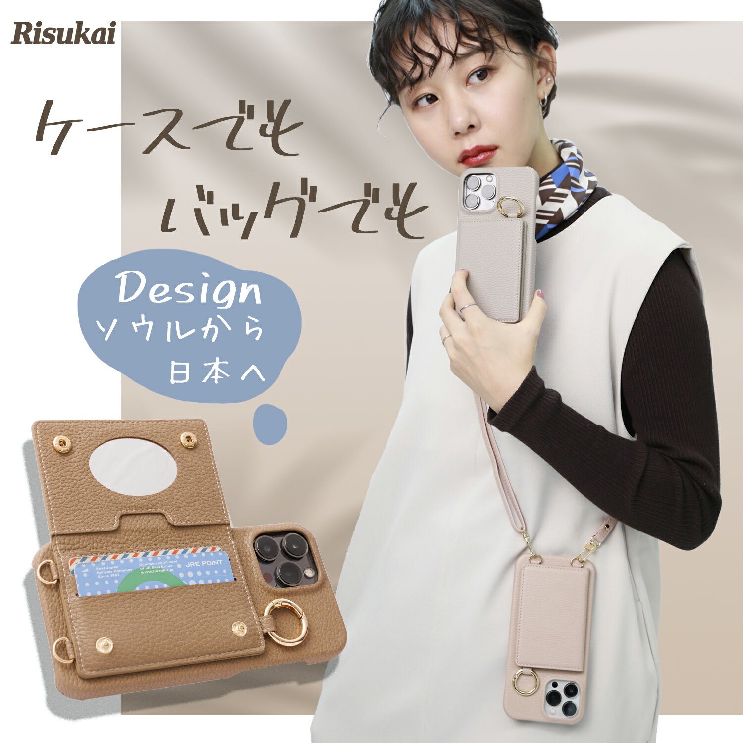スマホショルダー ストラップ スマホケース iPhone14 ケース カード収納 肩掛け ミラー付き 背面手帳型 iPhone14 韓国 デザイン iPhone13 se3 pro max mini 第3世代 第2世代 se iphone12 iphone11 iphone6 7 8 XR X XS ショップ:リスカイ