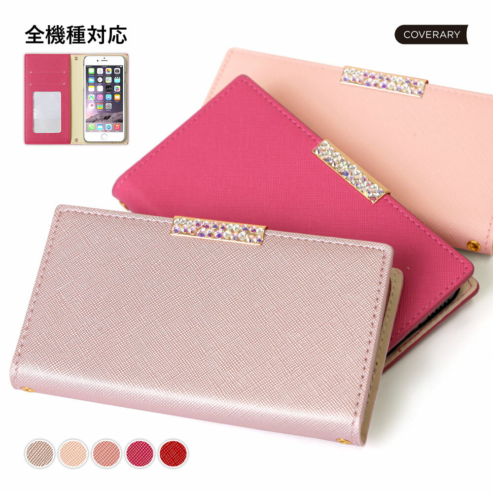 ■愛と幸せの象徴色ラブカラー手帳型ケースが全5色×ストーンウィズフレームスクエア型で、甘くなりすぎない大人女子におすすめのスマホケースです。