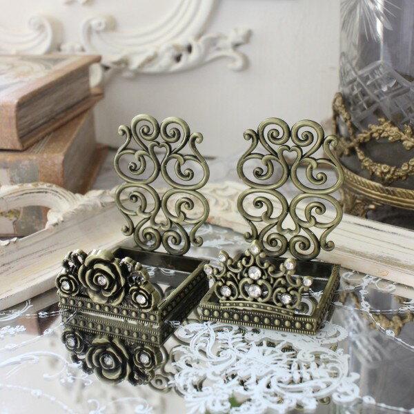 スマホスタンド かわいい カードスタンド タブレットスタンド (ローズ590/クラウン594) ポストカードスタンド 可愛い POP立て 金属製 お洒落雑貨 アンティーク風 雑貨 輸入雑貨